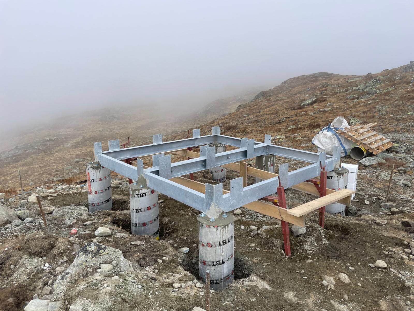 Per garantire la stabilità e la sicurezza dell’opera, il manufatto è stato ancorato a una fondazione mista, composta da una carpenteria metallica in acciaio e da pali in calcestruzzo armato, collegati direttamente alla roccia mediante barre inghisate con resina strutturale.